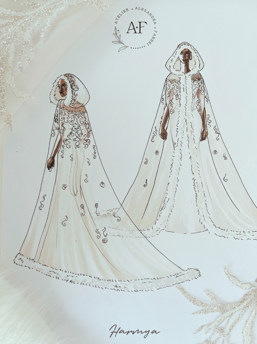 Un rendez-vous de deux heures dans l’atelier-cocon pour dessiner votre tenue de reine.