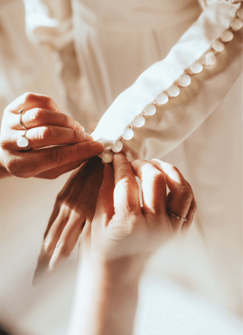 Vous découvrez votre robe dans son tissu définitif. Alexandra Fabbri ajuste les derniers détails : la longueur de la robe, celle des manches. Les retouches sont effectuées afin que votre robe soit parfaite.
